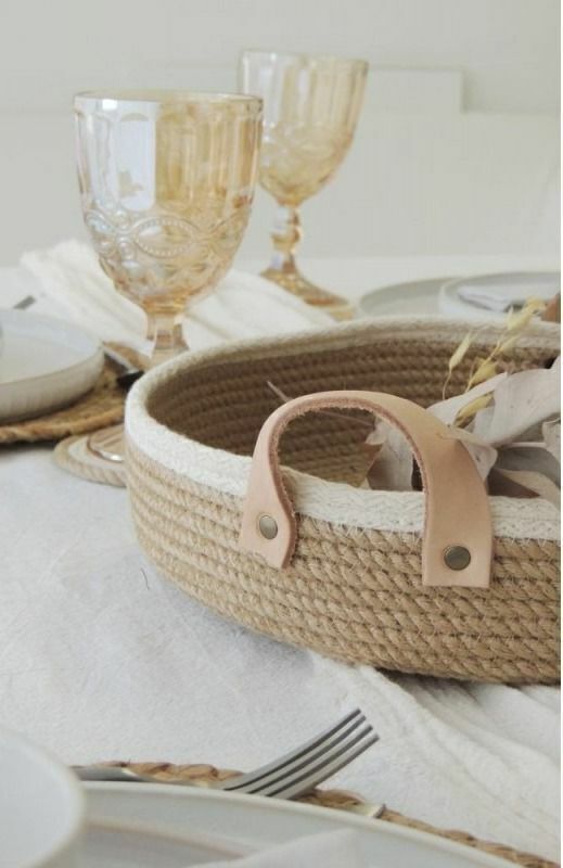 Panera 100% yute con detalle en algodón y manijas de cuero